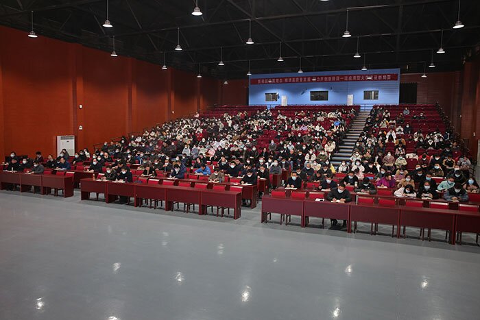 12月8日下午,党委副书记、校长李震在龙湖校区图书馆东报告厅为建筑学院、财经学院和化学与材料工程学院教职工和研究生、本科生代表作党的十九届六中全会精神宣讲报告。