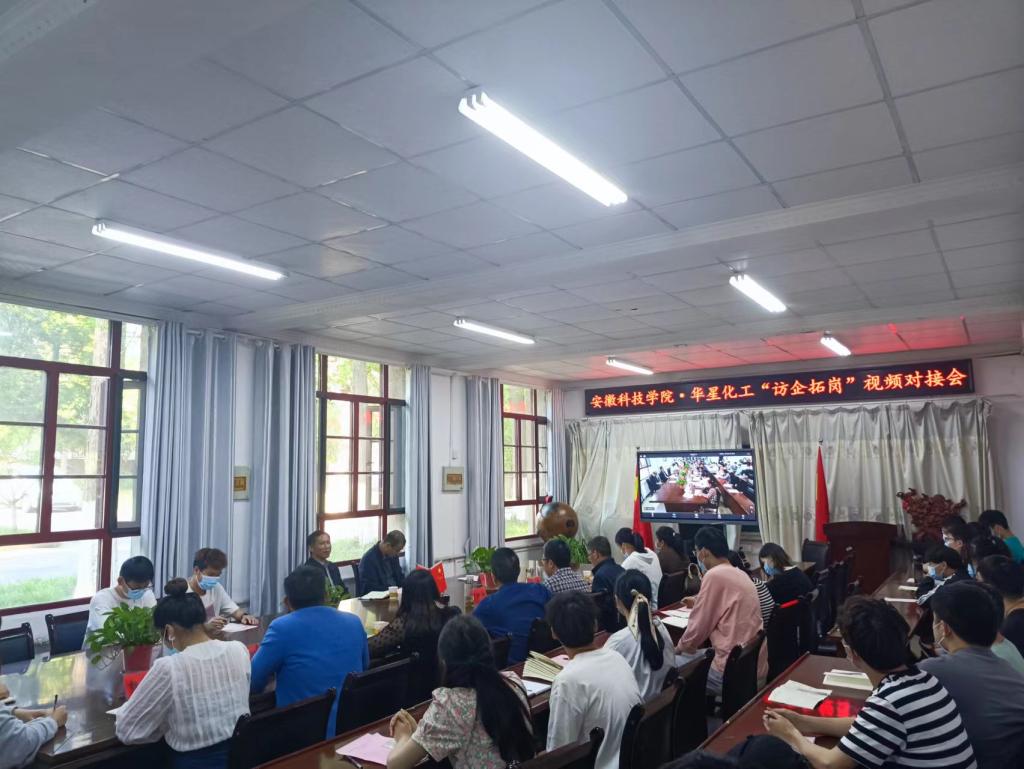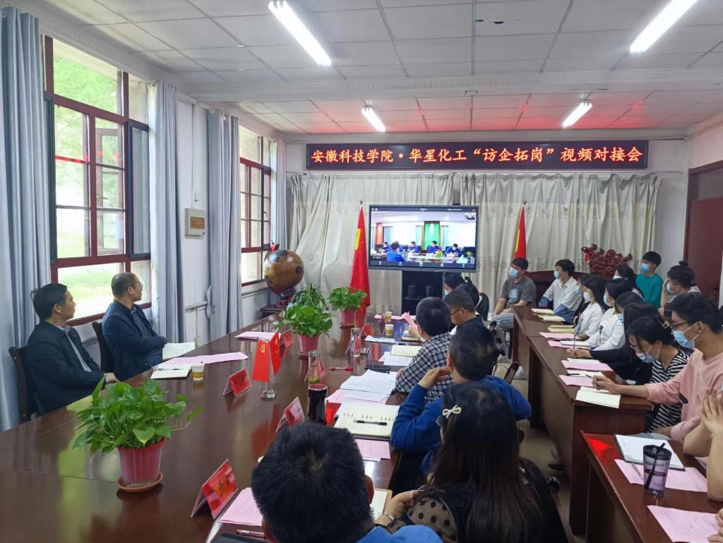 为贯彻落实教育部、省委省政府中国足彩网高校毕业生就业工作的决策部署,实现人才培养与就业岗位深度对接,助力毕业生疫情防控常态化背景下高质量就业,5月3日, 农学院在学院会议室举办“访企拓岗”视频对接会。校党委副书记、院长李震出席,招生与就业工作处副处长何晓冬,农学院党政领导、植物保护系毕亚玲等教师代表和毕业生代表参加会议,参会企业安徽华星化工有限公司党委书记、总经理颜泽彬,常务副总经理李文明以及相关职能部门负责人、就职于华星化工的我校校友代表等在和县、合肥等地视频出席会议。