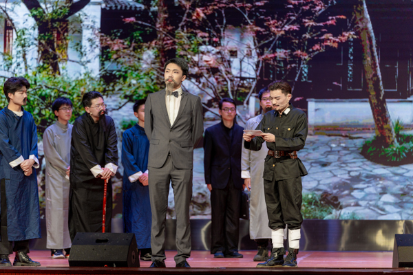 颁奖结束后,由我校师生共同创作表演的庆祝中国共青团成立100周年舞台剧《觉醒》举行首演。《觉醒》通过舞台艺术的形式再现了五四运动那段救亡图存、激情燃烧的岁月,展现了一个民族从沉睡到觉醒的时代故事。舞台剧共有八幕,依次呈现袁世凯签订二十一条卖国条约,陈独秀、李大钊、毛泽东等爱国青年探索寻找救亡图存道路,创办新青年、传播马克思主义、五四游行示威、中国共产党成立等重大历史事件,表现了中国青年的身影活跃在每一次影响国家民族进程的重大历史事件里,在各个领域为国家民族的解放斗争、发展进步和繁荣富强奉献力量;表达了一百年来在中国共产党的坚强领导下,中国青年已成为国家振兴、民族崛起的最重要力量之一,当代青年更是要“承风骨亦有锋芒,有梦则刚”,在新时代的青春赛道上奋力奔跑出当代青年的最好成绩。舞台剧从创作、排练到演出,学生全程深度参与,每一个角色、每一个动作、每一个细节均倾情打造,用心用情用力演出了精气神,在舞台上为广大师生呈现出了一堂生动的思政课。