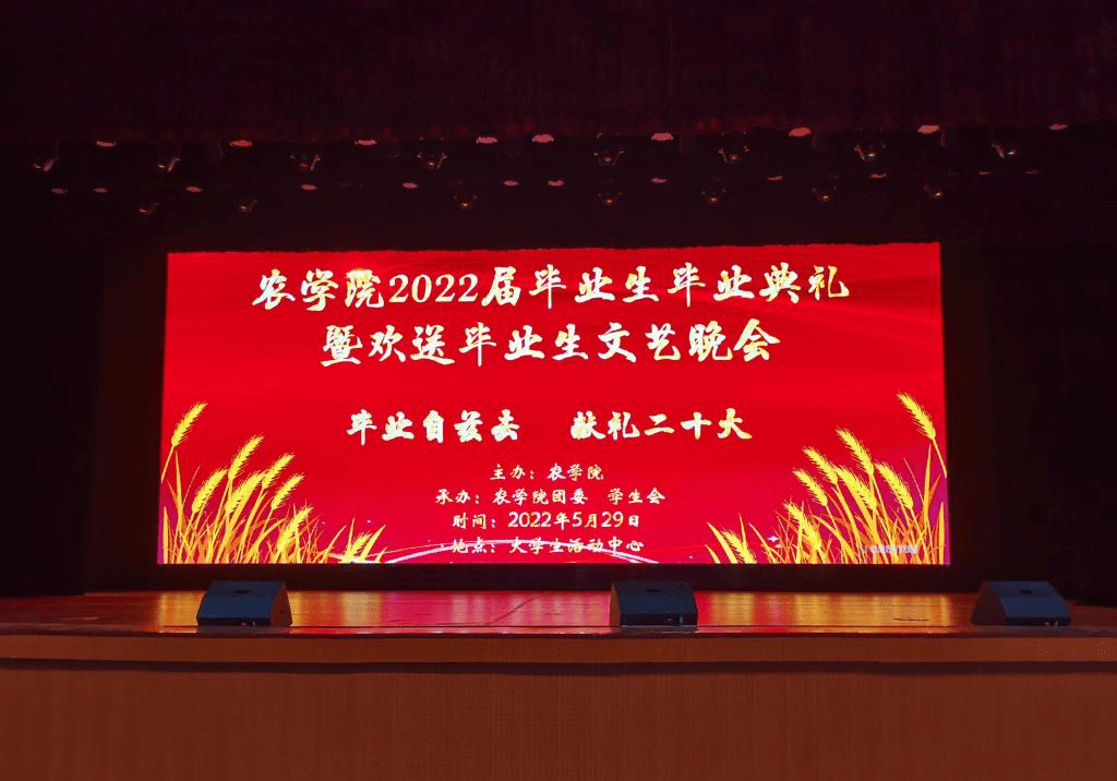骊歌未央启华章,一朝欢聚话离情。为切实做好2022届毕业生毕业教育,5月29日,农学院在大学生活动中心隆重举行以“毕业自兹去 献礼党的二十大”为主题的2022届毕业生毕业典礼暨欢送毕业生文艺晚会。校党委书记蒋德勤,党委副书记、院长李震应邀出席晚会。校党委委员、宣传(统战)部部长卫胜,党委学工部部长、学生处处长何永勇,教务处处长、创新创业学院院长赵伟峰,党委宣传(统战)部副部长、团委书记黄立义,招生与就业工作处副处长何晓冬,农学院党政班子成员,师生代表200余人出席典礼、观看晚会。农学院历届校友、各界朋友代表和不在校毕业生线上观看了晚会。