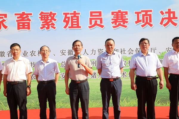 我校党委副书记、院长李震,党委委员、副院长李升和,省农业农村厅二级巡视员陈荣文,省总工会农林水利气象工会主席孙国平,省人力资源和社会保障厅技能人才管理服务中心副主任张维明,省生猪产业体系首席专家殷宗俊,滁州市农业农村局局长程金才,凤阳县人民政府副县长李文书,凤阳县农业农村局局长马军等领导出席开幕式。开幕式由省畜牧技术推广总站站长张莉主持。