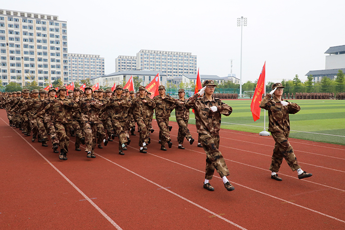 随着军训汇报操演总指挥的一声令下,军训汇报操演开始,全体军训学员军容严整、目光坚定、英姿飒爽、步履铿锵,列阵走过主席台接受全校师生的检阅。铿锵的口号响彻云霄、燃爆全场。男子擒敌拳、女子军体操、特色方阵等表演依次呈现,不断将操演推向高潮。