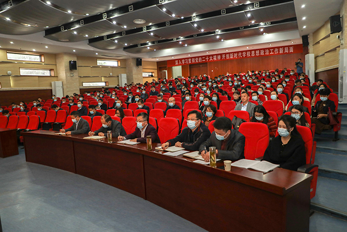 学校中层管理人员,全体专兼职辅导员,马克思主义学院教师,党委部门及工会、团委科级以上干部参加了会议。(摄影:陈宝 审核:姚文均 编辑:董秋瑞)