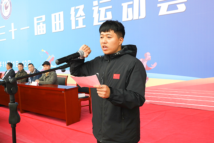开幕式上,体育教学部教师钱德代表全体裁判员宣誓,表明了公正裁判的态度;动物科学学院学生曹震代表运动员宣誓,表达了奋勇争先的决心。