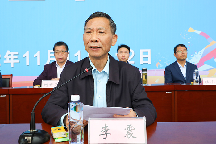 李震在开幕式上致辞,代表学校向筹备此次盛会的全体工作人员表示衷心感谢,向参加运动会的全体裁判员、运动员、全体师生致以诚挚问候。