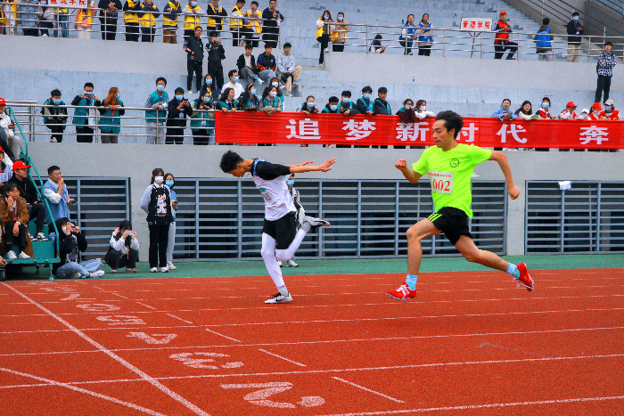风扬起细小的颗粒折射出光,而田径运动员们是赛道上唯一的焦点。时间在流逝,赛道在延伸,心脏在跳动,热血在沸腾,运动员们如闪电般掠过带起阵阵秋风,他们向着眼前的胜利狂奔,热血在他们胸中沸腾,辉煌在他们脚下铸就。