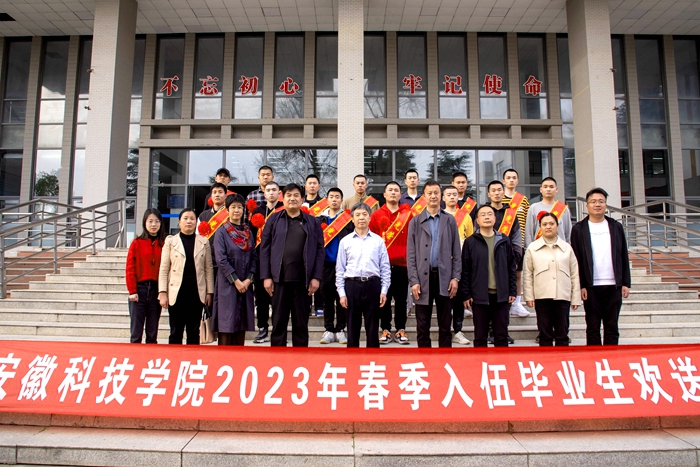 蒋德勤对15名2023届毕业班同学经过严格的程序选拔,光荣地成为一名解放军战士表示热烈祝贺。他指出,强国必先强军,军强才能国安。奋斗是青春最亮丽的底色,行动是青年最有效的磨砺。强军梦的实现需要大批高学历高素质的青年大学生参军入伍。同学们积极响应习近平总书记和党中央的号召,100多名毕业班学生报名参加应征,自觉接受祖国的挑选,体现了极高的政治思想觉悟和爱国主义情怀。大家光荣入伍,不仅是个人的光荣、家庭的荣耀,也是安徽科技学院的骄傲。