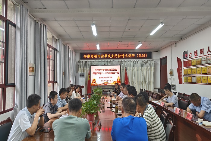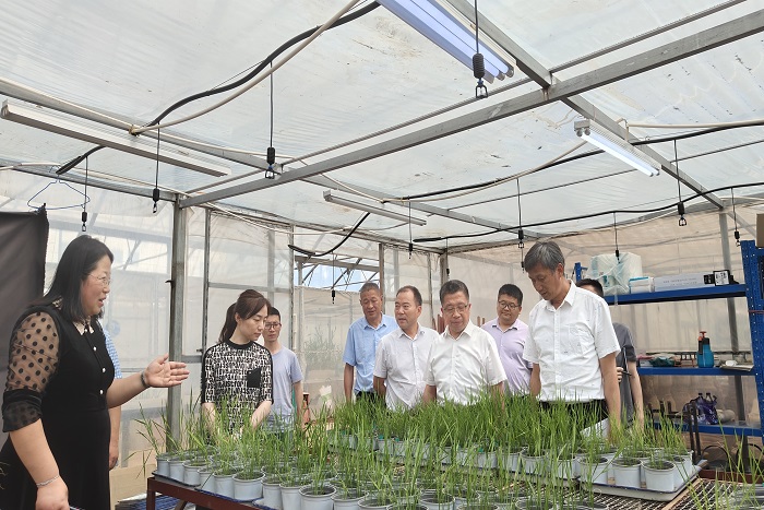 李升和代表学校对省植物保护总站一行莅校考察指导表示热烈欢迎,并陪同何振辉一行赴农学院植物保护平台杂草种子库、杂草标本室、植物生长室,种植科技园省农药风险监测中心凤阳县田间监测点、杂草研究科研温室等现场考察指导。