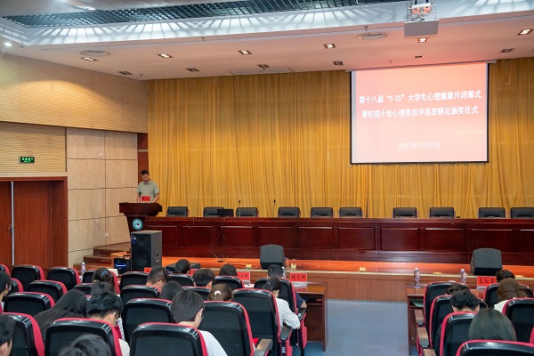 5月27日下午,我校第十八届“5 25”大学生心理健康月闭幕式暨校园十佳心理委员评选及颁奖仪式在凤阳校区会议中心第二报告厅成功举办。党委学工部部长、学生处处长黄立义出席闭幕式并讲话。党委学工部相关老师和各学院心理健康辅导教师及两校区班级心理委员300余人参加闭幕式。