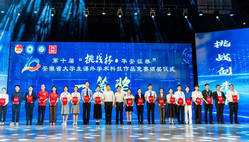 挑战青春,科创未来。6月11日下午,由团省委、省教育厅、省科协、省社科院、省学联共同举办的第十届“挑战杯 华安证券”安徽省大学生课外学术科技作品竞赛在淮南艺术文化中心落下帷幕。我校获得一等奖2项,二等奖8项,并在该项赛事中荣膺“优胜杯”。