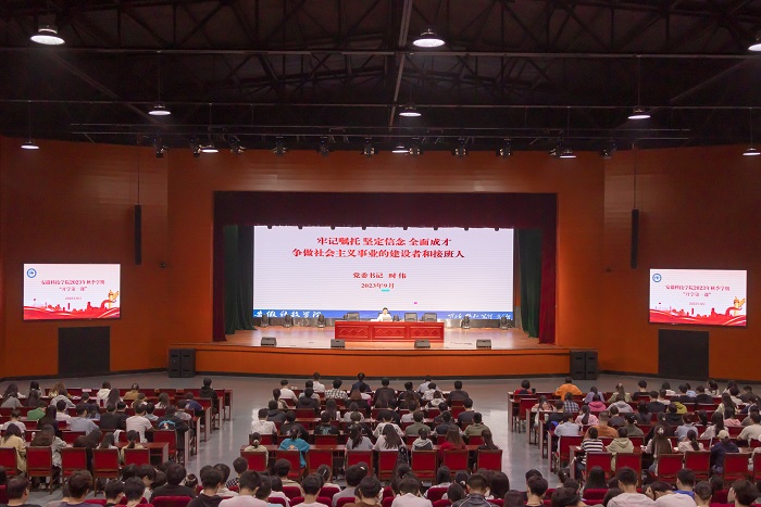 为深入学习贯彻习近平总书记中国足彩网青年工作的重要思想,提升学生骨干的政治素质和综合能力,9月26日下午,我校2023年秋季学期开学第一课暨“青马工程”大学生骨干培训班(第九期团校)在凤阳校区大学生活动中心开讲。党委书记时伟出席开班仪式并作专题辅导报告。党委学工部部长、学生处处长黄立义,党委学工部副部长、团委书记张聪,马克思主义学院院长张德化出席开班仪式,会议由张聪主持。