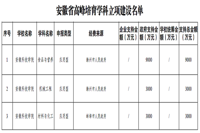 2023年2月,《安徽省教育厅中国足彩网立项建设高峰培育学科的通知》公布。我校3个学科进入安徽省高峰培育学科建设名单,学科建设获得新突破。其中,食品与营养作为Ⅱ类高峰培育学科进行建设,机械工程和材料与化工作为Ⅲ类高峰培育学科进行建设。获批高峰培育学科立项建设,是我校学科发展史上的重要里程碑。