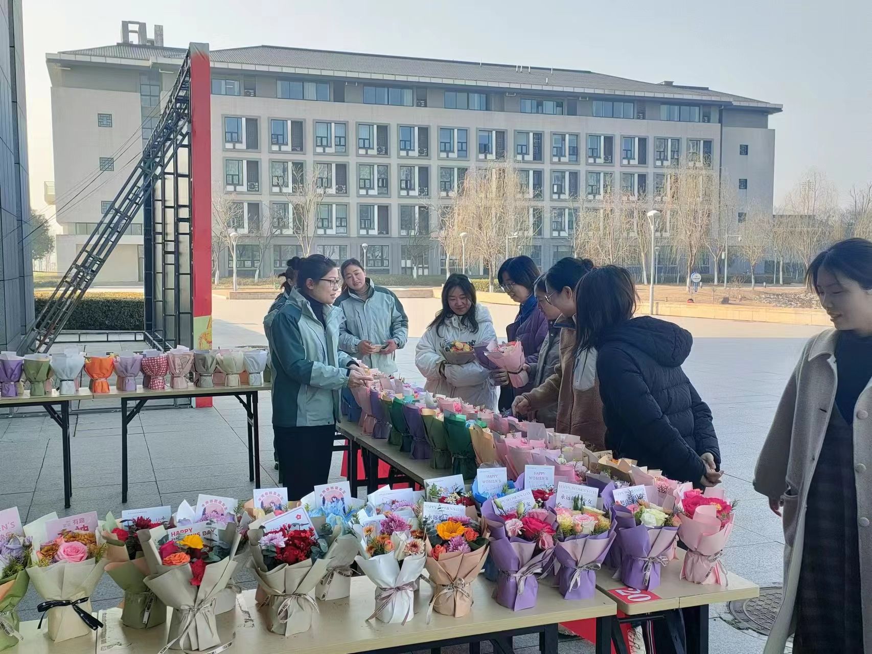 人文学院开展“精心花艺 品味美好”创意插花活动;财经学院紧扣学校重点工作,开展学校本科教育教学审核评估知识抢答活动;建筑学院畅享乡村美景,感受乡村变化;食品工程学院组织到凤阳县廉洁教育中心观看图片、视频、影片,上了一堂全面生动的师德师风教育课;农学院、信息与网络工程学院、体育教学部等组织了踏青采摘,领悟春光美景;机关分工会组织看电影、爬山踏青;为学校服务的物业公司分别在龙湖校区和凤阳校区组织向女同胞赠送鲜花活动。