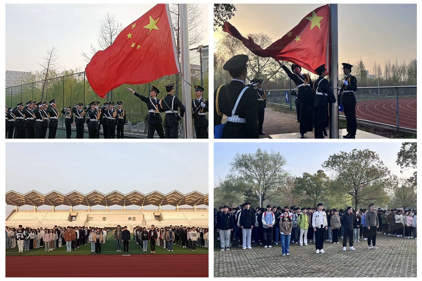 清晨6时40分,升旗仪式正式开始。国旗护卫队的同学们迈着整齐划一、铿锵有力的步伐,护送着五星红旗正步走向旗杆。随着激昂的《义勇军进行曲》响起,五星红旗冉冉升起,在熠熠晨光中迎风飘扬。全体师生肃立,面向国旗行注目礼。