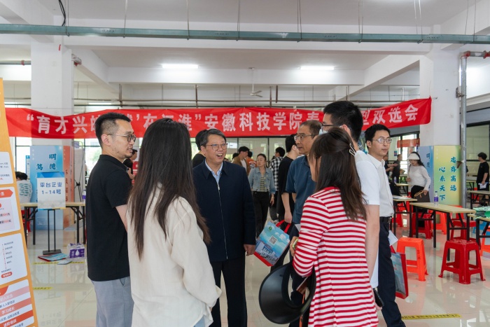 为促进毕业生高质量充分就业,学校抢抓春季就业冲刺时间,于5月8日在我校凤阳校区和龙湖校区,分上下午两场分别举办“人才兴皖,就业江淮”主题专场就业集市。校党委委员、副院长李升和,校党委委员、副院长王孝义分别莅临龙湖校区、凤阳校区现场指导。