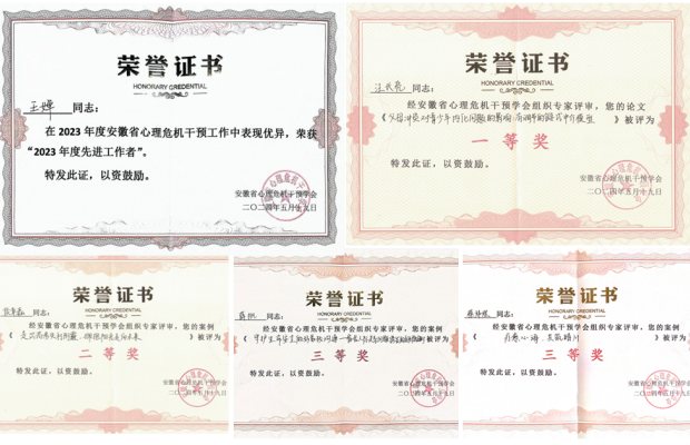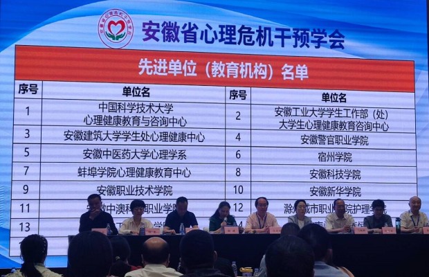 本次会议以“加强心理危机干预培训 提升心理干预专业水平”为主题,邀请国内知名专家围绕《心理咨询的核心技能》《危机干预的识别与处置》《焦点解决在危机干预中的应用》等主题作了专题报告。大会评选表彰2023年度心理危机干预工作先进单位、先进个人、优秀论文和优秀案例,我校获评2023年度安徽省心理危机干预工作先进单位,王婵获评2023年度心理健康工作先进个人,汪长亮获优秀论文一等奖,侯章磊获优秀案例二等奖,薛枫、蔡炜煜获优秀案例三等奖。这也是我校心理健康教育工作继获评安徽省首届“心理健康教育工作双十佳先进集体”和安徽省2023年度优秀心理健康教育工作集体以来再获表彰,首次实现年度心理健康教育工作省级表彰大满贯。