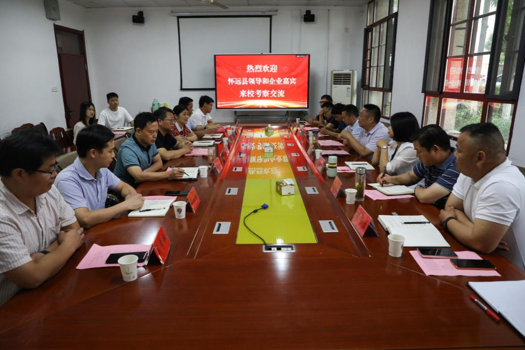7月2日下午,怀远县人大常委会主任王五洲、怀远县副县长常春梅率县经开区、县科技局、县农业农村局、县人社局负责同志以及安徽博宠宠物用品公司董事长丁周守力、市场部经理周发展等,来校考察交流政产学研用合作事宜。校党委委员、副院长李升和,科研处处长陈丰,蚌埠市人大常委会委员、民进安徽科技学院主委张菊,动物科学学院党委委员、副院长贺绍君,食品工程学院副院长郑海波等出席会议,会议由动物科学学院党委书记、副院长程斌主持。