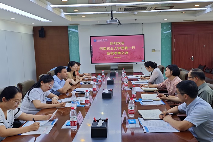 7月23日,河南农业大学团委书记贾云飞、团委副书记张倩、经济与管理学院党委副书记李蓓蓓、经济与管理学院副院长赵友平一行来我校考察交流工作。校团委书记张聪、管理学院党委书记丁景良、管理学院副院长郑谦、团委副书记李刚等参加会议。会议由张聪主持。