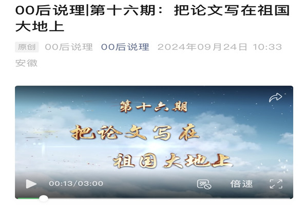 安徽日报《00后说理》栏目刊发我校视频作品《把论文写在祖国大地上》