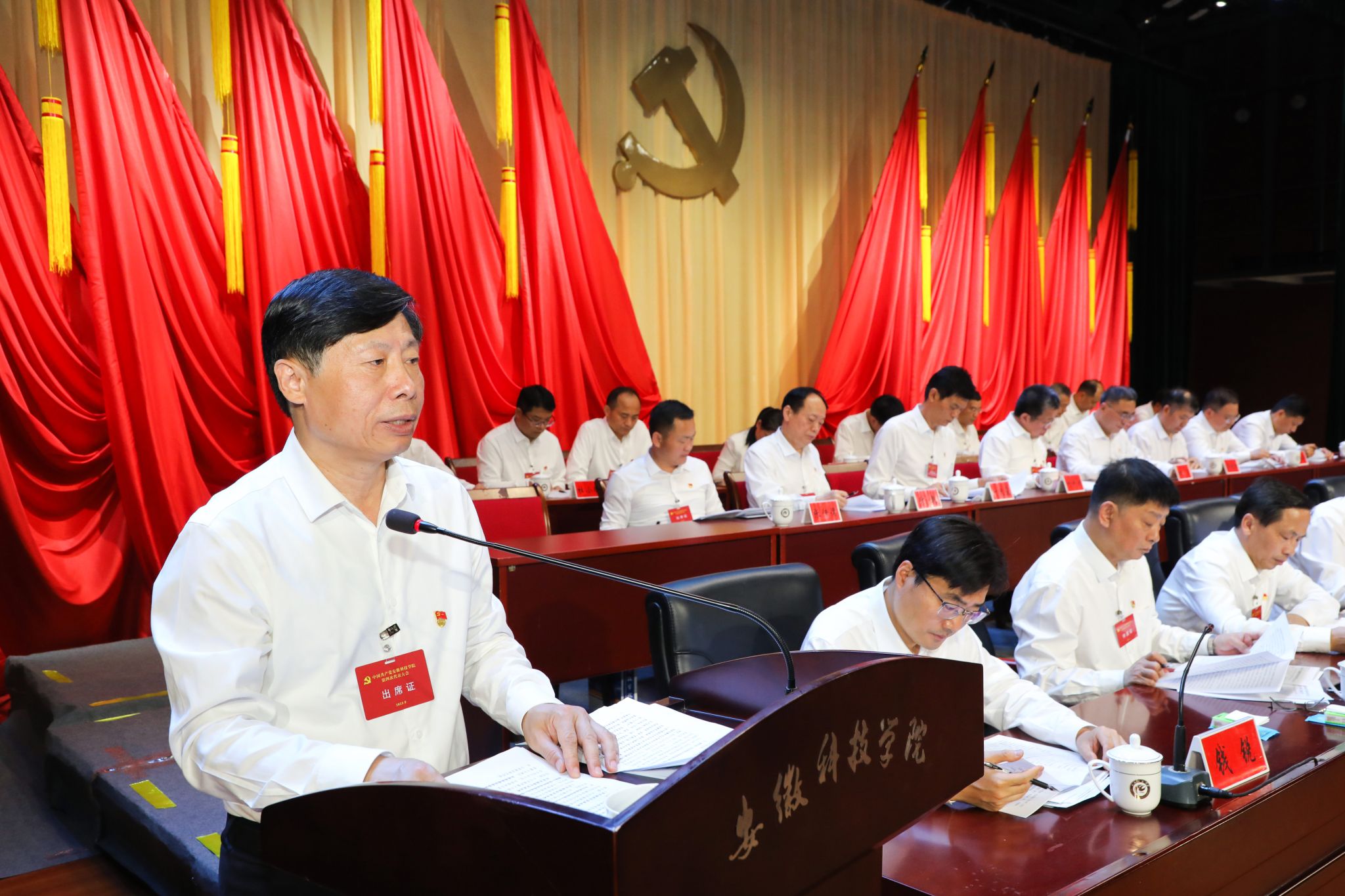 第一次全体会议上,时伟代表中国共产党安徽科技学院第三届委员会作题为《聚焦内涵建设强化改革赋能为全面建设一流应用型大学而团结奋斗》的工作报告。