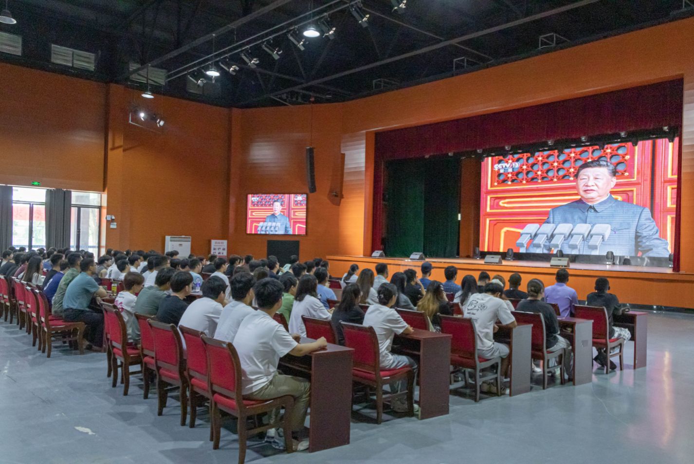 9月3日上午,我校师生集中收听收看纪念中国人民抗日战争暨世界反法西斯战争胜利80周年大会,共同庆祝这一激动人心的伟大时刻,认真学习领会习近平总书记重要讲话精神。