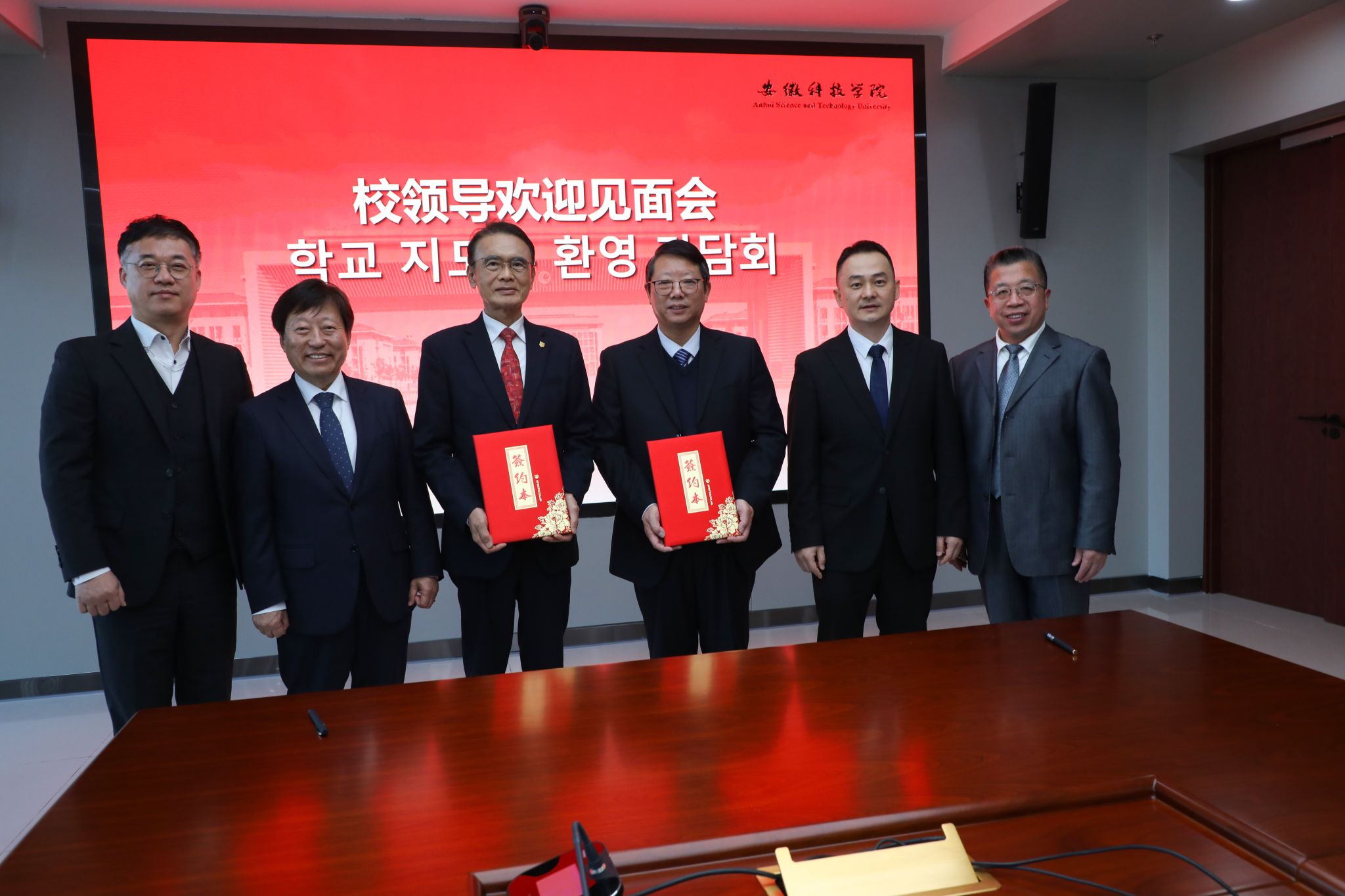校领导欢迎见面会和项目联合管理委员会会议(年会)在滁州校区明德楼举行,我校党委副书记、院长李升和出席会议并讲话。李升和对代表团的到来表示热烈欢迎,深情回顾了两校自2013年合作以来取得的丰硕成果。李升和简要介绍了我校发展近况和难得的中外合作办学机遇期,期待以李承喆校长此次访问为契机,推动两校合作迈向新高度。李承喆、金仁燮分别致辞,对学校的热情接待表示感谢,对双方合作成果表示满意,表达了进一步深化拓展合作的强烈愿望。会上,双方听取了联合管理委员会成员调整、上一年度项目运行情况汇报,并就未来在学生交流、教师互访、科研合作等领域的深化合作进行了深入讨论,达成多项共识,特别是运用AI等现代技术助力项目运行与管理。双方还共同签署了新的授课协议等文件。