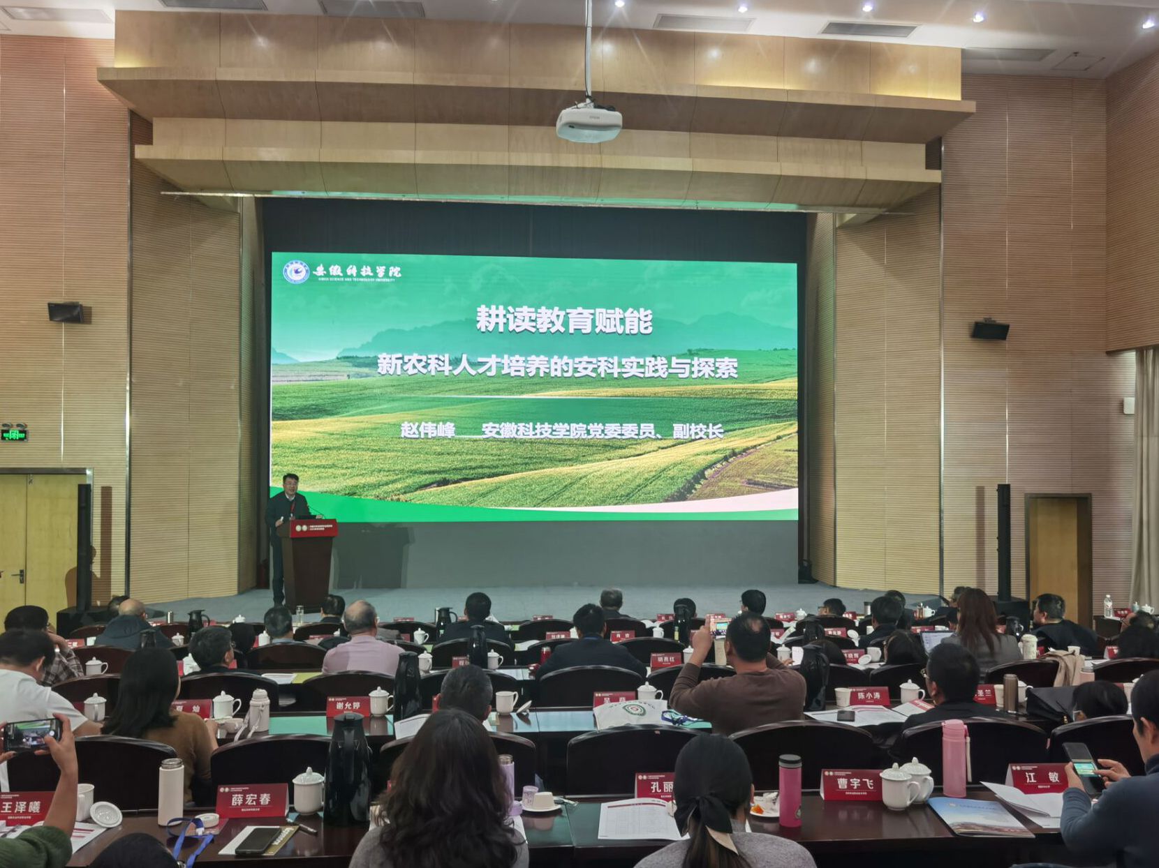 本次年会以“农林院校深化产教科融合与发展农业新质生产力”为主题。会上,党委委员、副院长赵伟峰教授代表学校作了主旨报告。他简要介绍了学校的基本情况,着重从强化“大情怀”引领,构建“大思政”育人体系;强化人才培养顶层设计,打造“大学堂”课程创新体系;强化“校地企”融合育人,拓展“大课堂”联动空间;强化AI赋能,实施课堂教学分类评价等方面系统展示了我校教育教学改革及特色育人模式的探索经验。学校“小岗精神引领,耕读教育赋能的‘大情怀 大学堂 大课堂’新农科人才培养模式”受到与会领导、专家学者的充分肯定。