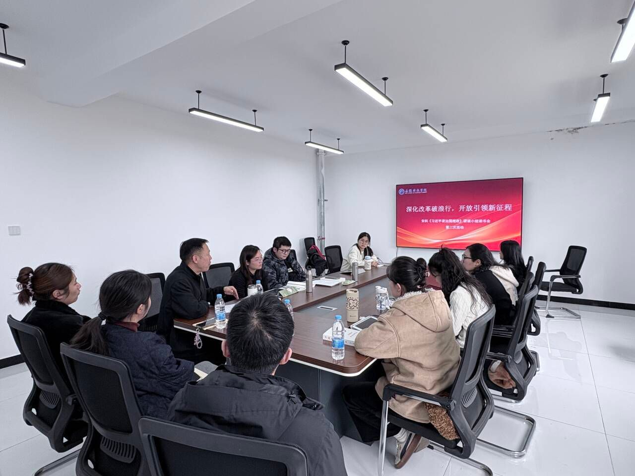 专题汇报后,完颜曹洋、文张璋、高安琪、党子然四位同学分享了各自的读书心得。同学们围绕改革开放的本质、取得成就展开了热烈交流,在思想碰撞中相互启迪,深化了对“改革开放是前无古人的伟大社会革命”这一论断的理解。