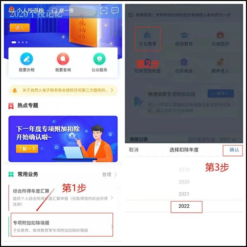 比如2022年新增子女教育扣除,需要申报填写。先按情形一步骤确认之前申报的其它不需要修改的专项附加扣除信息后,点击App首页,专项附加扣除填报。