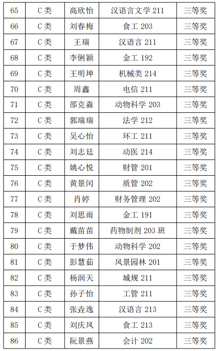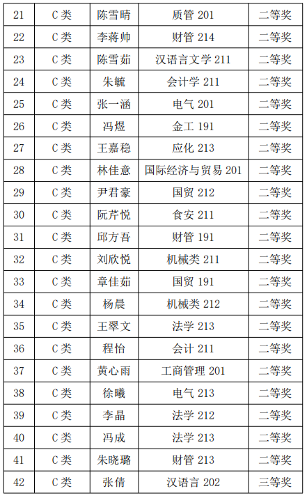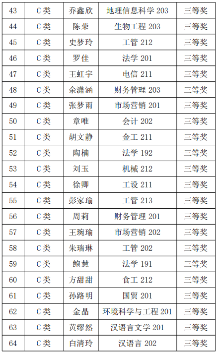 “2022年全国大学生英语竞赛”初赛于5月15日上午在我校举行。本次竞赛共有1329人报名参赛,其中B类206人、C类1123人。在教务处细心指导和外国语学院精心组织下,在阅卷老师客观公正的认真评阅后,严格按照学生成绩和本次竞赛给定获奖比例划定学生获奖名单,并报教务处批准,现公布获奖名单如下: