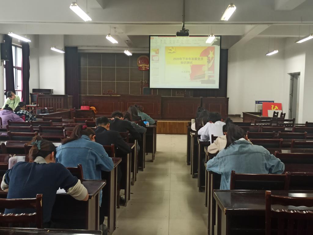 为了加强对大学生党员发展对象的教育和引导,提高大学生党员发展质量,10月14日下午,人文学院于模拟法庭组织发展对象进行2020年下半年发展党员知识测试活动。