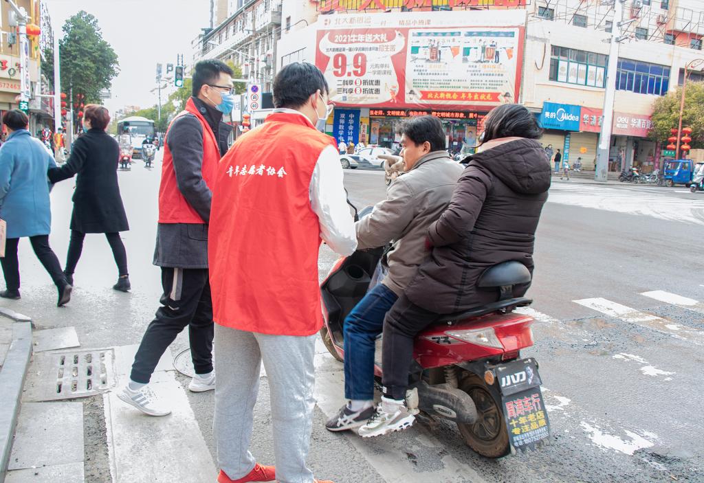 传承雷锋精神,弘扬志愿精神。3月17日下午,凤阳县府东街与府北街十字交叉口有着与往常不同的色彩,众多身着红色志愿服装的青年分列道路两旁,规范交通秩序。这些青年正是我校学生社团八一社的二十余位同学,他们正配合交通警察开展志愿执勤活动。
