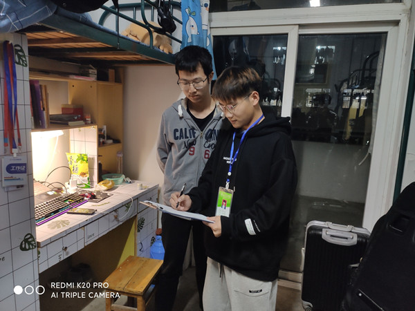 为了加强学生宿舍管理,规范学生行为,督促全校同学营造良好的校园环境及寝室氛围,校大学生自律委员会近日在学生处的指导下组织实施公寓安全卫生督导行动,在强化宿舍安全卫生知识宣传的同时,督促同学们注意安全防范,保持宿舍卫生干净环境。