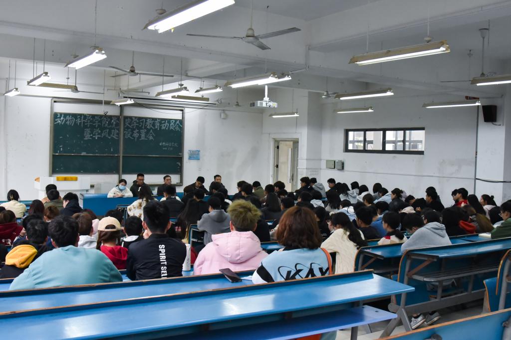 汤帅在讲话中对动科院的整体学风建设成效给予肯定,分析了目前学院学风建设存在的主要问题:一是缺乏明确目标,学习态度不够端正,学习动力不足;二是专业思想不稳定,存在厌学心理;三是学习方法不得当,有被动学习的倾向;四是科技创新意识不强,缺乏创新信心和勇气。