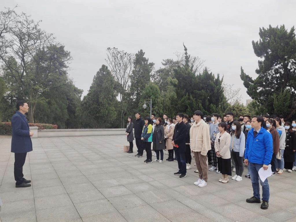为进一步继承和发扬革命先烈的奉献精神和光荣传统,3月31日下午,食品工程学院教职工党支部、学生党支部、研究生临时党支部全体党员在院党委书记付光玺的带领下,一同前往凤阳县烈士陵园,进行了以“学习党史,缅怀英烈”为主题的党日活动。