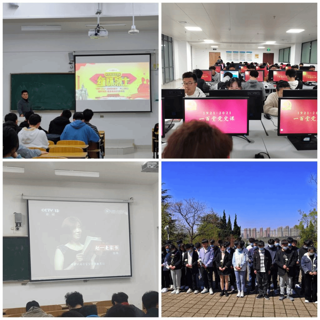 线下以形式多样的团日活动展开,通过观看《见证初心和使命的“十一书”》,重温11位革命先烈的感人故事,感悟初心使命,坚定理想信念,弘扬革命精神,凝聚迈进新征程,奋进新时代的强大力量;通过一百堂党史课,引导广大学生党员厚植爱国情怀,坚定理想信念,承担责任使命,努力争当先锋,为实现中华民族伟大复兴的中国梦贡献青春力量;通过召开缅怀英烈主题班会,追忆革命先烈,培育和弘扬中国传统革命精神,继承革命优良传统,让红色基因代代相传;通过组织学生到蚌埠市烈士陵园进行祭扫,向先烈们鞠躬默哀、献花,表达深切悼念和崇高敬意,缅怀烈士不朽功勋,传承弘扬英烈精神。