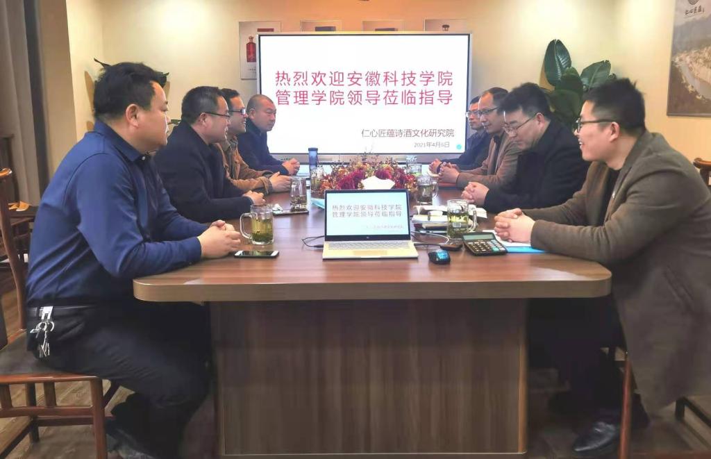 4月6日下午,管理学院党委书记丁景良、院长赵伟峰、副院长张国宝、营销系主任刘宗飞一行赴蚌埠仁心匠蕴诗酒研究院洽谈校企合作事宜,受到公司董事长徐峰,诗酒文化研究院院长宫蔚国等的热情接待。