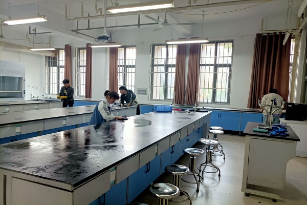 农学院实验室主任何克勤、实验员王丽华、余利等老师的带领下,同学们不怕累不怕脏,个个身手敏捷,实验室被打扫的油光发亮;大家团结协作,一台台笨重的实验设备全部被搬至合适位置。经过两个小时的辛勤劳动,农科综合实验教学中心躬行楼3号楼3、4、5层实验室焕然一新,整洁有序。看到被美化、亮化、净化的实验室,同学们虽然身上沾满灰尘,大汗淋漓,但脸上露出了开心的笑容。