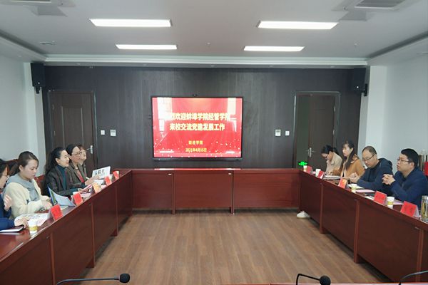4月15日下午,蚌埠学院经管学院党总支书记杨晓秋、党总支副书记夏晓燕一行来我院交流调研党建发展工作。院党委书记杜小明,副院长、国贸系教工党支部书记李强,党政办主任张俊,分团委书记薛枫,学生党支部书记宣晶晶、王天云参加交流,会议由杜小明主持。