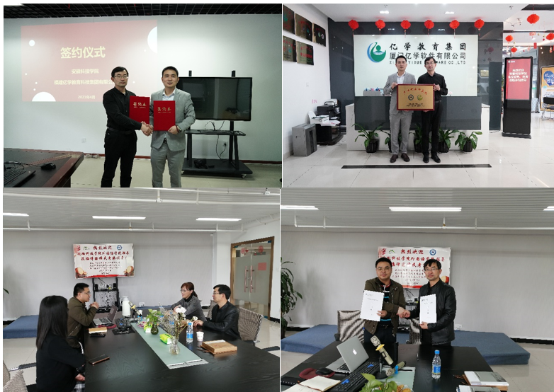 陈德用一行深入公司实地考察企业环境、感受企业文化。座谈会上,陈德用向企业人员介绍了学院发展概况、专业设置、人才培养模式等具体信息,详细询问了人才需求情况,听取了用人单位对于学院人才培养的意见和建议,针对毕业生实习就业、产学研合作展开深入讨论;此外,他诚挚邀请公司到学校进一步交流,进一步推进校企产学研及就业工作等方面的合作,达成了合作意向。陈德用与厦门亿学软件有限公司董事长连敏辉签订校企合作协议书,并授予企业产学研合作基地牌匾。陈德用与译国译民翻译服务有限公司总经理俞剑辉签订校企合作协议书。