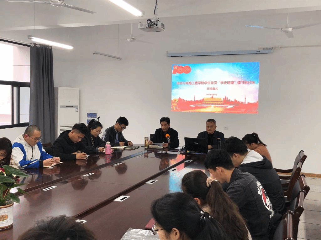 4月21日下午,信息与网络工程学院于尚行楼B418会议室举办学生党员“学史明理” 读书研讨班开班典礼。学院党委书记王振其,正处级组织员周向群,党政办副主任王培培,专职辅导员陈凯、李军成、丁阿敏、崔北坤以及学院全体学生党员出席开班典礼,典礼由王振其主持。