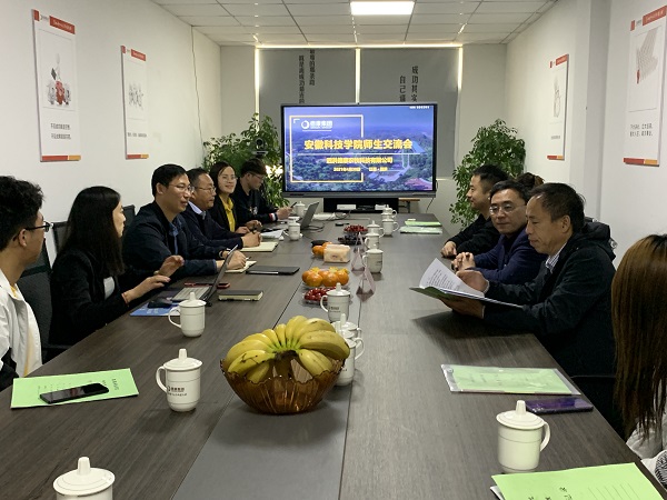 姚勇一行受到公司总经理史景松等热烈欢迎。座谈会上,双方就就实习目的、实习安排、实习内容、实习进度、实习效果等进行了交流,并现场连线了在养殖场实习的学生,交流实习感受。