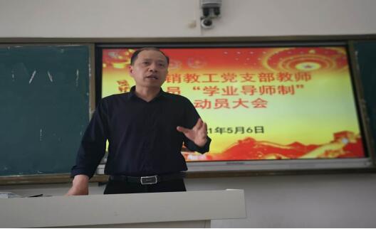 五月春光好,正是读书时。管理学院营销教工党支部经过充分的酝酿和认真的准备,支部在2020级营销专业53名学生中推行的“学业导师制”于5月6日下午在致知楼A101教室举行了正式启动仪式。学院党委书记丁景良和支部全体教工党员参加了启动仪式,启动仪式由营销系主任、支部书记“双带头”人刘宗飞博士主持。