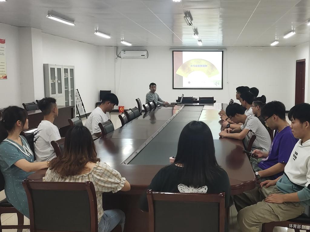 为深入推进党史学习教育,积极开展“我为群众办实事”主题实践活动,走进学生、贴近学生、服务学生,充分发挥体育教育的价值,引领学生感受体育之美,激发学生学习的能动性,切实提高我校大学生乒乓球裁判水平,全力做好我校2021年大学生乒乓球锦标赛裁判工作。5月27日晚上,体育教学部在部门会议室举行乒乓球竞赛规则与裁判方法培训会,为我校大学生乒乓球协会提供指导与帮助,大学生乒乓球协会裁判团全体成员参加了培训会。