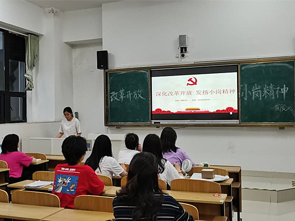 活动中,各团支部为同学们介绍了凤阳县小岗村的历史事件,通过视频和图片资料向同学们阐述了什么是小岗精神,以及如何用发展的眼光去诠释“小岗精神”。各团小组也纷纷从“打破思维定式,敢于创造”“扎根基层,敢于担当”“勇于追梦,敢于奋斗”等角度讨论了对“小岗精神”的理解,以及新时代下如何践行与传承“小岗精神”。