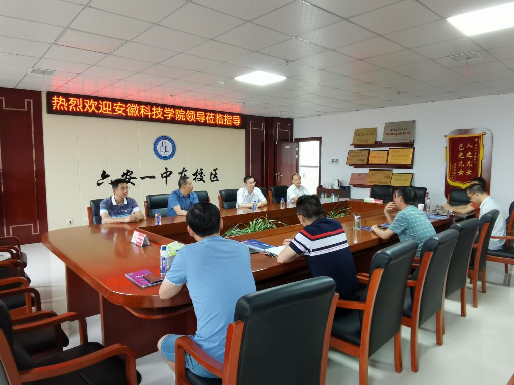 招生宣传工作组先后到访舒城县千人桥中学、舒城县桃溪中学、六安市毛坦厂中学、六安市金安高级中学、六安市新安中学、六安第二中学河西校区、六安第二中学、六安市城南中学、六安实验中学、六安一中东校区等多所中学,并与各高中学校校领导、年级组组长、高三班班主任等进行座谈。
