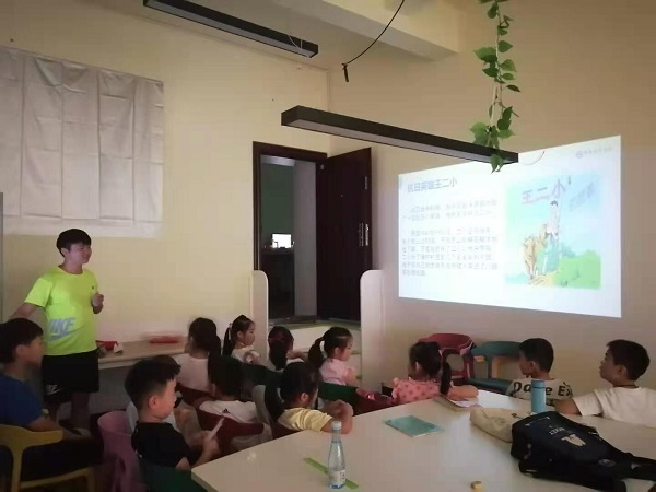 自7月12日开始,志愿者每一个星期的周一到周五上午给孩子们进行课业辅导,辅导他们完成暑假作业,下午进行党史课程教学。在“领略英雄风姿,学习民族精神”的课程中,小朋友们无不被黄继光、董存瑞、狼牙山五壮士、刘胡兰、黄旭华、钟南山等英雄而产生崇高的敬意,在课后小朋友们分享了他们知道的英雄人物的故事。小朋友们表示要学习英雄人物身上优秀的品质,长大后要为祖国做出贡献。在传统节日的课程中,小朋友们了解到许多中国传统节日的由来,还有许多典型的人物,这增强了他们民族自豪感和文化自信心。此外,志愿者们还和小朋友们一起下象棋、做手工、看书、进行体育锻炼。