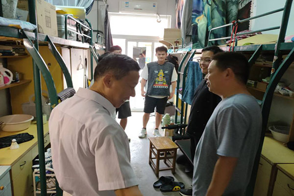 张程、张华、乔印虎、开金苗在走访过程中,与同学们进行了亲切交流,内容涉及暑假学习生活经历、返校过程以及同学们到校后的思想动态、寝室卫生状况;各位领导都特别强调了学校针对疫情的防控措施,嘱咐同学们要克服厌战情绪和麻痹思想,严格遵守学校疫情防控相关规定,时刻保持疫情防控意识,在做好自身防护的同时尽快适应开学后的节奏,以饱满的热情投入到新学期学习生活中。
