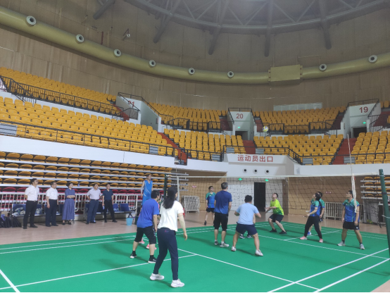为丰富教职工业余文化体育生活,增强教职工体质,弘扬团结协作精神,加强对外交流,提升学院凝聚力和战斗力,9月26日下午,农学院与蚌埠学院外国语学院在蚌埠奥体中心成功举办“庆国庆”气排球友谊赛。蚌埠学院党委副书记韦文联、蚌埠学院外国语学院党总支书记赵睿、院长赵生学、我校农学院党委书记何世潮、院长崔广荣、副院长舒英杰等领导亲临现场观战指导。东道主蚌埠学院外国语学院牵头具体组织实施了整个赛事。