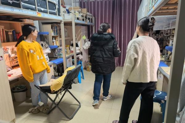 检查中,老师们详细了解学生宿舍安全卫生状况,发现本院绝大多数宿舍情况较好,但是还存在个别宿舍整洁度不高、东西摆放杂乱等问题,还需加强卫生清洁、改善环境。在走访外宿学生过程中,陈慧中认真细致地检查了学生居住地及周边安全环境状况,叮嘱同学们务必提高安全防范意识,注意用电安全、消防安全、交通安全,妥善保管好个人物品。
